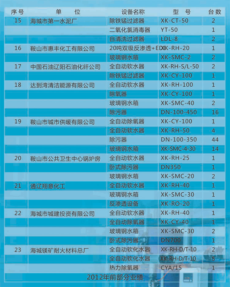水處理設(shè)備系列|鞍山市益水環(huán)保設(shè)備有限公司銷售業(yè)績